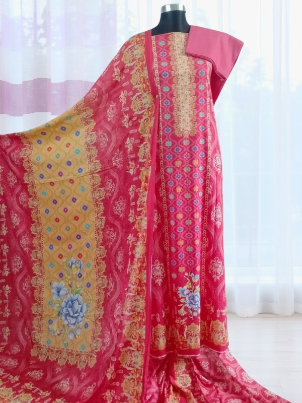 আমাদের থ্রি-পিসের বৈশিষ্টসমূহ: => জামাটির লম্বা 47″+ এবং বডি 65″+ ফ্রি সাইজ => সম্পূর্ণ কটন ডিজিটাল প্রিন্ট করা (১০০% কালার গ্যারান্টি) => সম্পূর্ণ জামা এবং ওড়নাতে এমব্রয়ডারি কাজ করা => ওড়না: ৫ হাত (নামাজি) => সালোয়ার: ২.৫ গজ (প্রিমিয়াম Soft কটনের পিস)